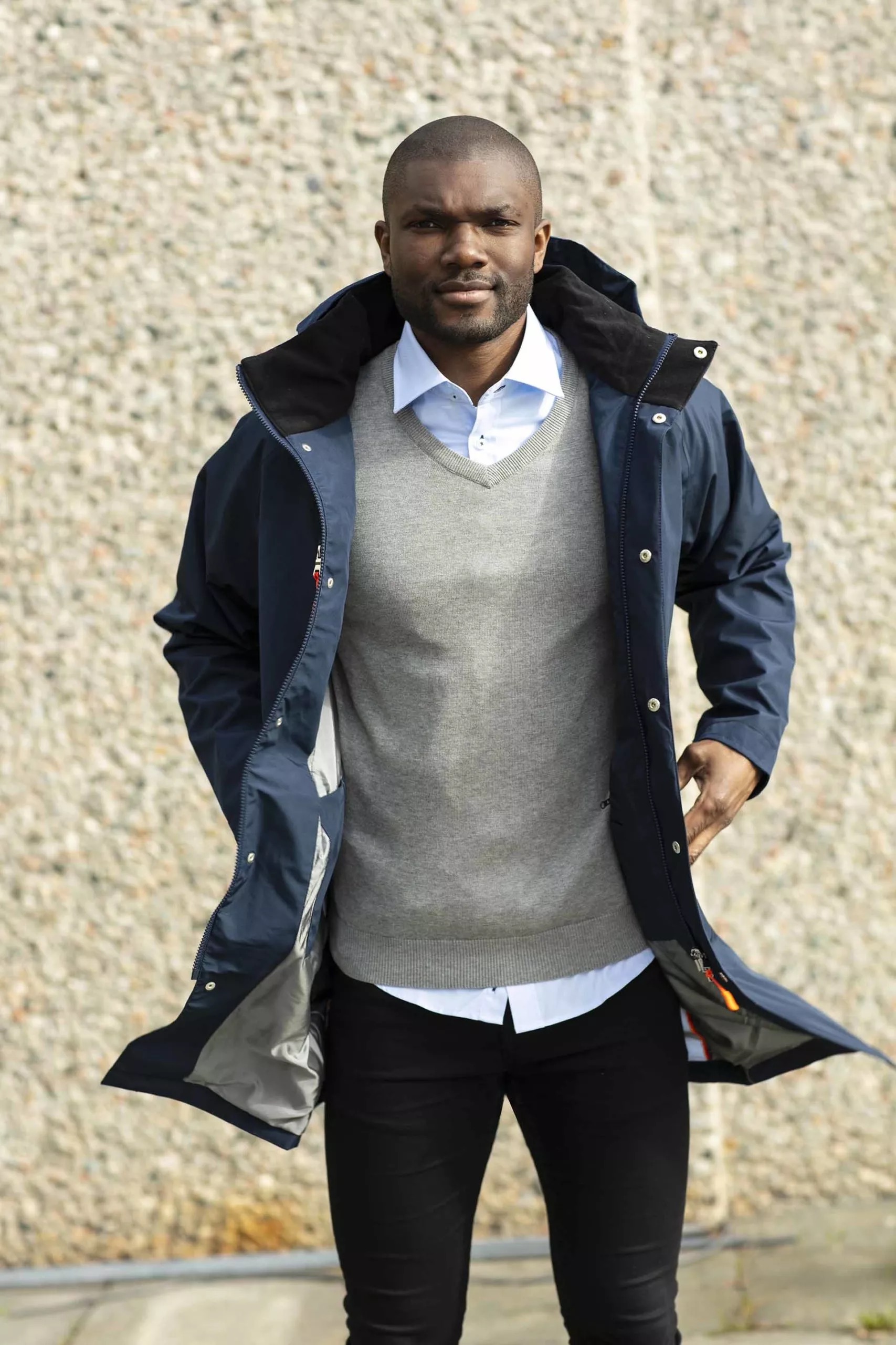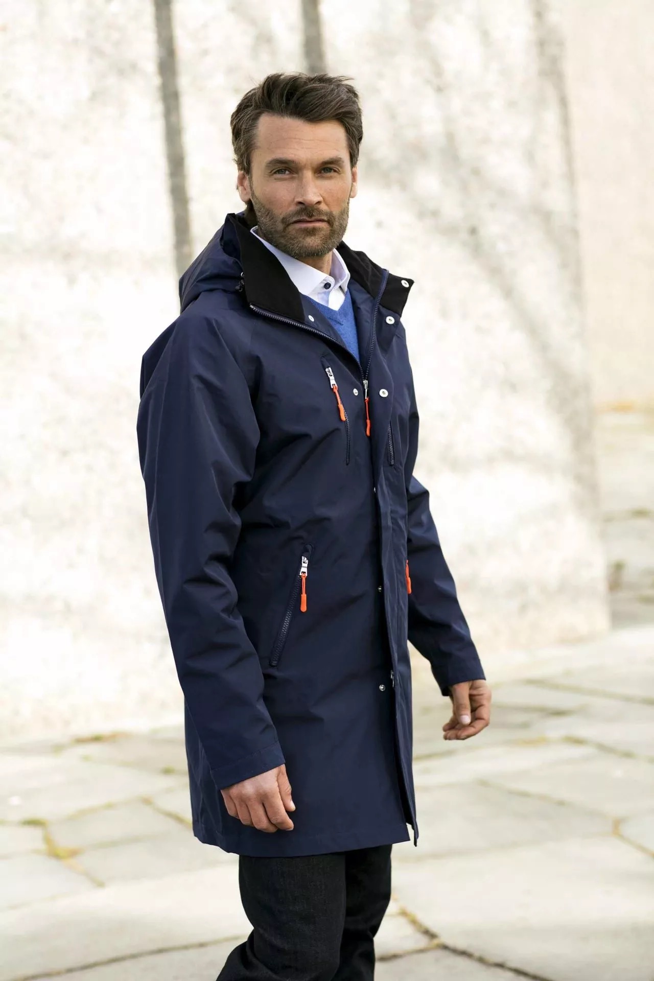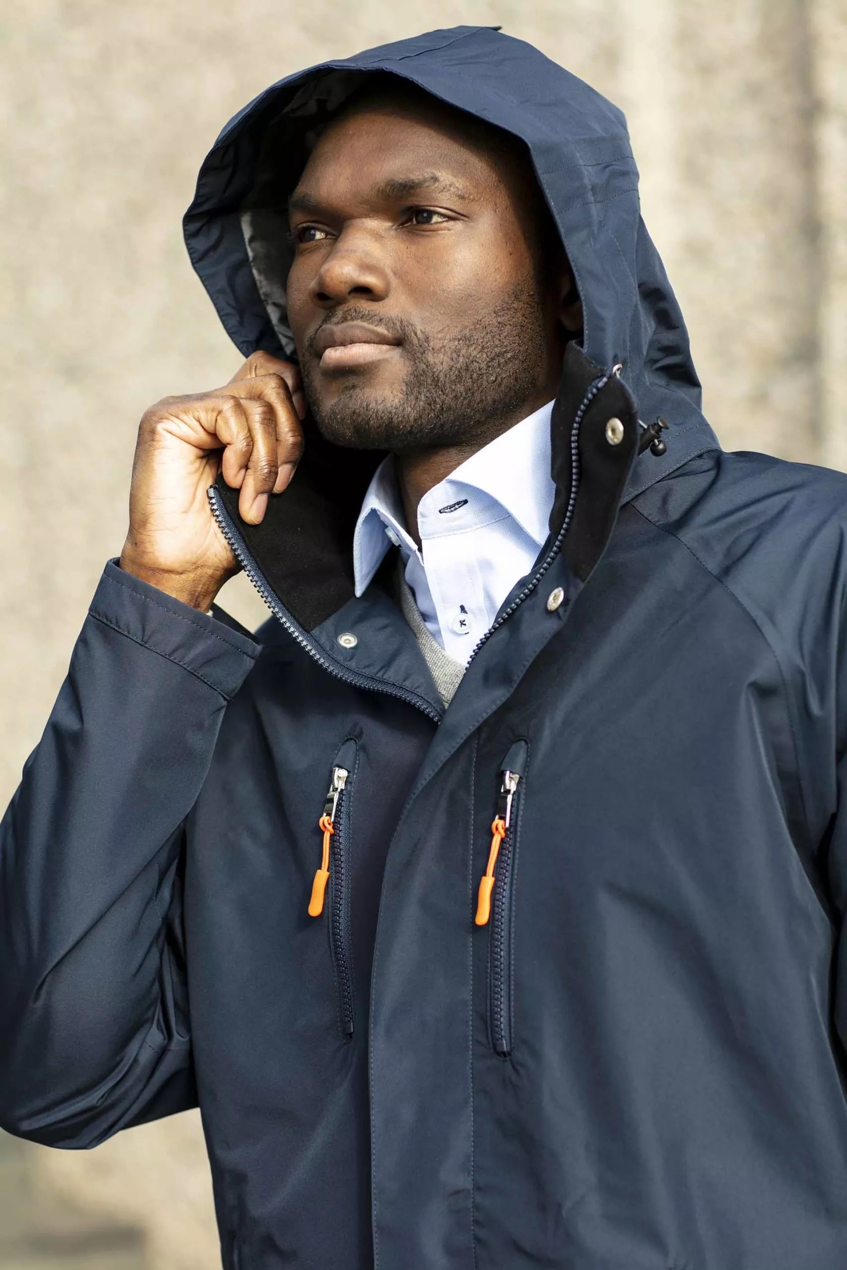 Sporty, lett og elegant frakk i urbant design, produsert i et mykt behagelig materiale med lite overflatestøy, og med egenskaper som en teknisk skalljakke. Vanntett, vindtett, pustende, og med teipede sømmer. 4 utvendige og 2 innvendige lommer, og med avtakbar og justerbar hette.